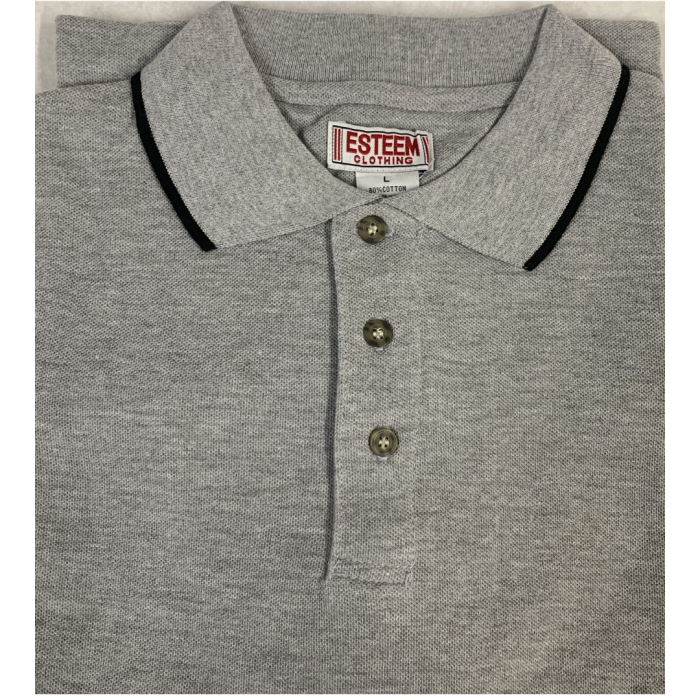 Grey color pique polo shirt with contrast collar/cuff in Black color.
